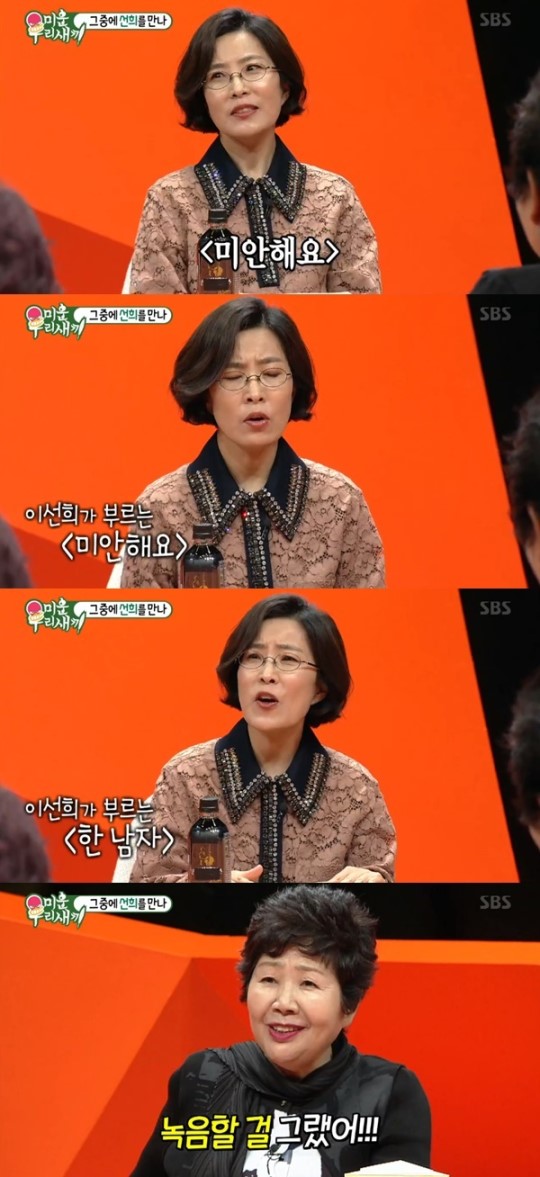 9일 밤 방송된 SBS 예능 프로그램 '미운 우리 새끼'에서는 게스트로 이선희가 출연했다.