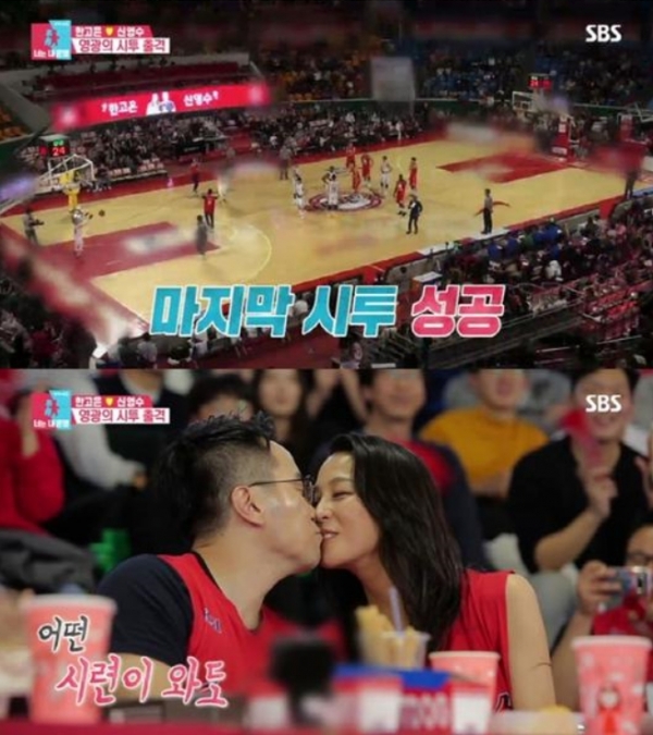 이 날 한고은과 남편 신영수는 프로농구 경기가 열리는 잠실체육관을 찾은 모습이 그려졌다. 평소 농구 마니아로 알려진 신영수는 “영광스럽게도 시투를 맞게 됐다”며 감격스러워했다. 자칭 농덕(?) 신영수는 경기장 입성과 동시에 설렘을 숨기지 못했다.