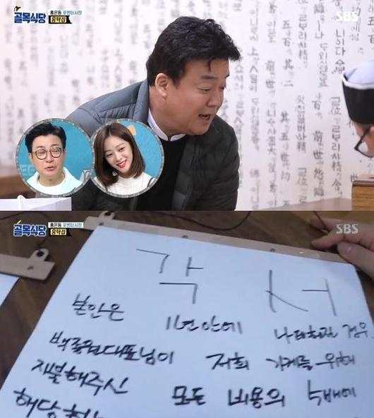 [스타인뉴스 이채원 기자] ‘골목식당’ 백종원이 홍탁집 아들에게 각서를 받았다.