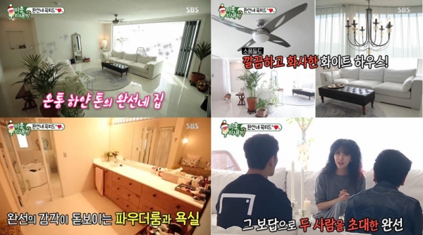 김완선의 집은 대체로 하얀 톤으로 꾸며졌고, 깔끔하고 화사한 분위기가 돋보였다. 김종국은 "집이 스튜디오 같아"라고 감탄했다. 이를 본 신동엽은 "김종국이랑 완전 반대다"고 말했다.