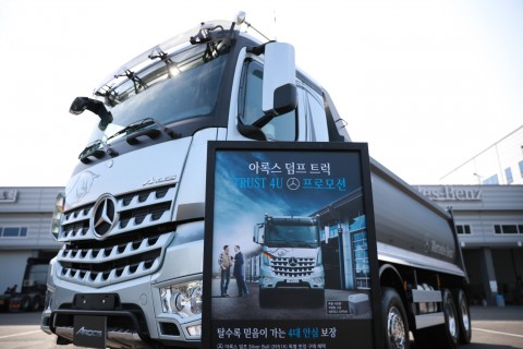 메르세데스-벤츠 아록스 덤프 국내 출시 3주년을 기념하여 선착순 33대 한정으로 실시되는 아록스 덤프 트럭 TRUST 4U 특별 한정 프로모션은 건설 불황기에 수익 확보의 어려움과 거친 환경에서 주행하는 덤프 트럭 특성상 큰 수리비 부담으로 고충 받고 있는 덤프 트럭 고객들을 위해 차량 유지 관리에서 정비, 사고 수리까지 지금까지 업계에서 시도된 적 없던 포괄적 차량 서비스에 특화된 혜택을 제공함으로써, 고객들이 덤프 트럭을 운행하는 동안 정비 및 수리비 걱정없이 수익 사업에 집중할 수 있도록 도움을 제공하고자 마련되었다.