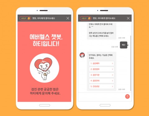 ‘하티’는 고객의 다양한 문의사항들을 정리/분석해 개발한 AI 솔루션으로, 에버헬스 서비스를 이용하는 30만 회원들은 건강검진과 관련해 시간 제약 없이 보다 빠르고 편리하게 문의하고 답변을 확인할 수 있다.