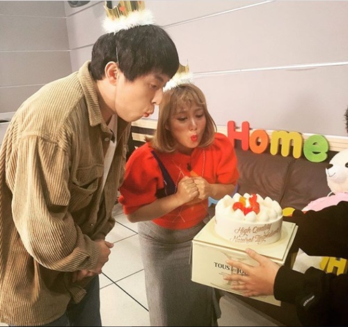 사진 속의 기안84와 박나래는 왕관 모양의 고깔모자를 쓰고 케이크의 초를 불어 끄고 있다. 기안84는 22일, 박나래는 25일이 생일이다.