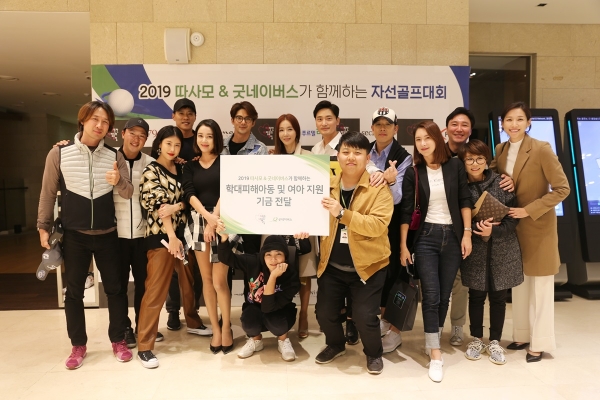 국제구호개발 NGO 굿네이버스(회장 양진옥)는 지난 28일 강원도 춘천에 위치한 더플레이어스 C.C에서 ‘2019 따사모&굿네이버스가 함께하는 자선골프대회’를 진행했다고 30일 밝혔다. 따사모가 주최한 이번 행사에는 연예인과 프로골퍼 등 총 180명이 참여하여 성황리에 행사를 마쳤다.