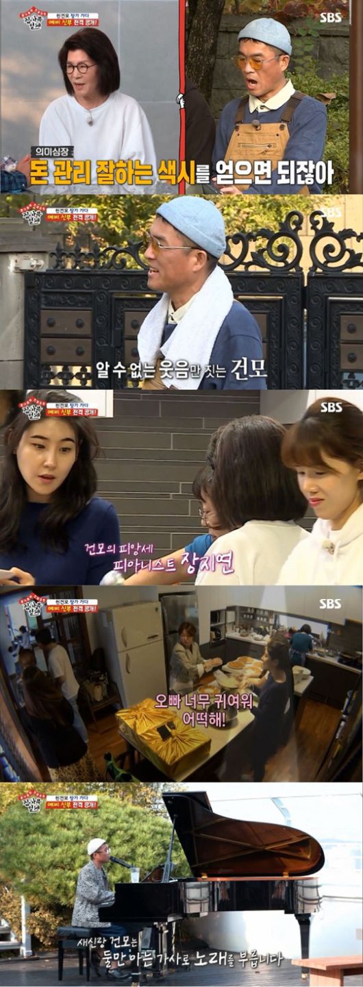 한편, 멤버들을 맞기 위해 음식준비가 분주하던 집 안에서 놀라운 얼굴이 포착됐다. 바로 김건모의 예비 신부인 피아니스트 장지연이었다. 그녀는 김건모가 현관으로 들어오자마자 함박 미소를 지으며 "오빠 너무 귀여워, 어떡해!"라고 사랑넘치는 모습을 보이며 눈길을 끌었다. 김건모는 쑥스러운 듯 예비 신부가 건네주는 음식을 받아먹고 웃으며 "음식 맛있다"고 고마운 마음을 전했다. 이후 장지연은 김건모의 조카를 비롯한 가족들과도 스스럼없이 어울리며 친한 모습을 보였다.