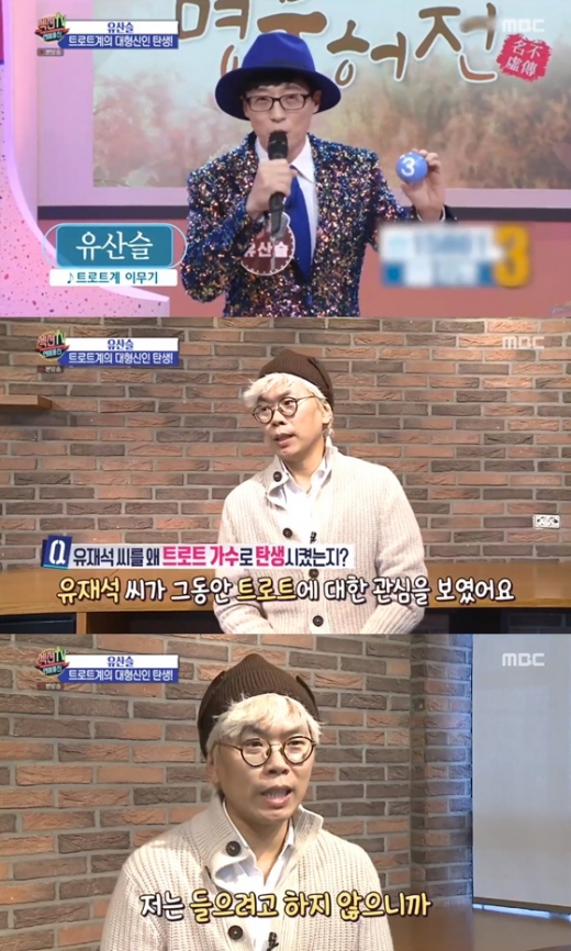 한편 유재석은 최근 '놀면 뭐하니?'의 '뽕포유' 프로젝트를 통해 트로트 가수 유산슬로 전격 데뷔했다. 그는 신곡 '합정역 5번 출구', '사랑의 재개발'을 내놓고 KBS 1TV '아침마당'에 출연해 많은 화제를 모았다.