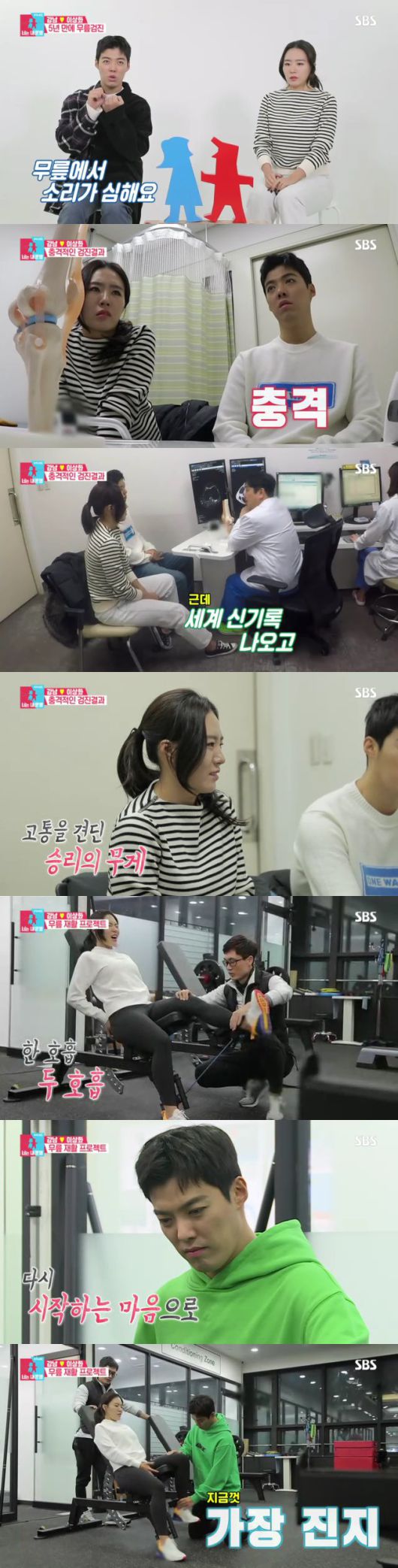 이상화는 무릎 정밀 검진을 위해 강남과 함께 병원을 찾았다. “병원 가는 걸 안 좋아한다. 심리적으로 부담이 커지니까 선수 생활 중에는 잘 안 찾았다. 그렇게 몇 년을 버티다가 병원을 가니 무서웠다”라고 속마음을 밝힌 이상화는 평소와 달리 잔뜩 긴장한 모습을 보였다. 이상화를 기다리던 강남 역시 초조한 듯한 모습이었다.