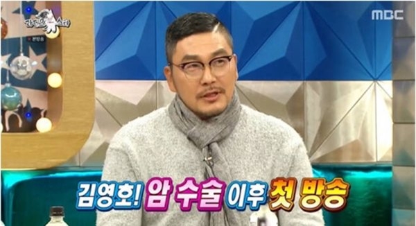 12월 25일 김영호는 MBC '라디오스타'에 출연해 수술 후 경과와 현재 상태를 전했다. 그는 "암은 5년이 지나야 완치 판정을 받기 때문에 아직 완치는 아니나 많이 좋아진 상태"라며 "제 근황을 궁금해하는 분들이 많았다. 괜찮다고 말하고 싶었다"고 출연 이유를 밝혔다. 암 수술 이후 첫 방송이었다.
