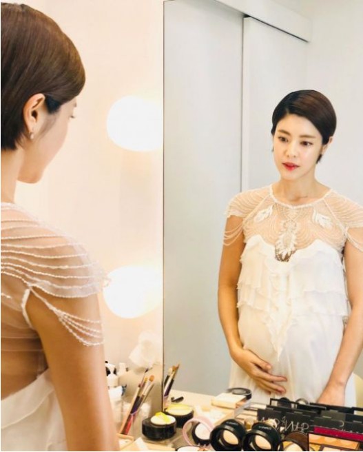 공개된 사진에는 이윤지가 부른 배를 잡고 거울을 통해 사진을 찍고 있는 모습이 담겨 있다. 아름다운 D라인이 보기만 해도 흐뭇하다.