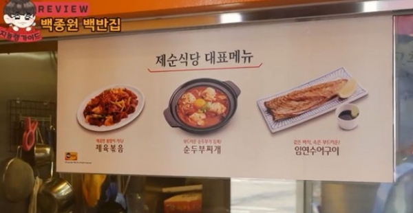 백종원 대표는 서울 지하철 4호선 숙대입구역 인근에 백반집 '제순식당'을 오픈했다. 주메뉴는 제육볶음, 순두부 찌개, 임연수어구이 등이 있다. 가격은 7000원대.