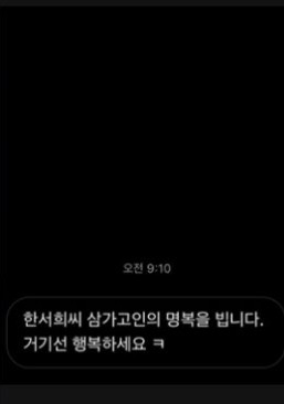 한서희는 오늘(20일) 인스타그램에 사진 한장을 게재했다. 공개된 사진은 한 네티즌이 한서희에게 보낸 인스타그램 메시지가 담겨있다. 이 네티즌은 “한서희 씨 삼가 고인의 명복을 빕니다. 거기선 행복하세요”라는 악의적인 내용의 메시지를 보냈다.