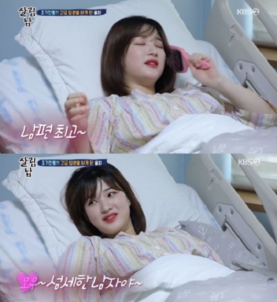 지난 29일 방송된 KBS 2TV 예능프로그램 ‘살림하는 남자들 시즌2’(이하 ‘살림남2’)에서 민환, 율희 부부는 정기검진을 위해 산부인과를 찾았다. 의사는 평소 배 당김이 심하다는 율희의 말을 듣고 검사를 했고, 검사 후에는 안전을 위해 입원을 권했다. 간호사도 병실을 찾아 율희에게 누워 지내면서 반드시 안정을 취하라며 신신당부했다.