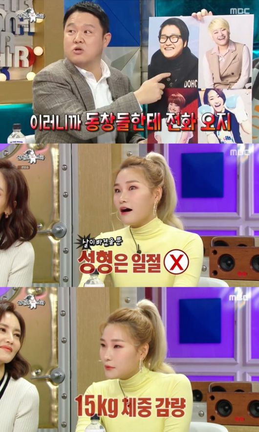 성형 의혹부터 언급했다. 손승연은 "항상 방송에 나가면 학창시절 동창들에게서 연락이 많이 온다. 늘 '예뻐졌더라' 멘트로 시작한다. 살 많이 빠졌다 한다"고 털어놨다. 그는 외모 변천사 사진 공개에 당황해 웃음을 샀다. 김구라는 "이러니까 연락이 오는 거다"고 농담을 던졌다. 손승연은 "성형 의혹을 많이 받는데 정말 안했다"면서 "몸무게를 15kg 넘게 뺐다"고 해명했다.