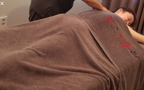 공개된 사진 속 박슬기는 조리원에서 산후 마사지를 받고 있다.