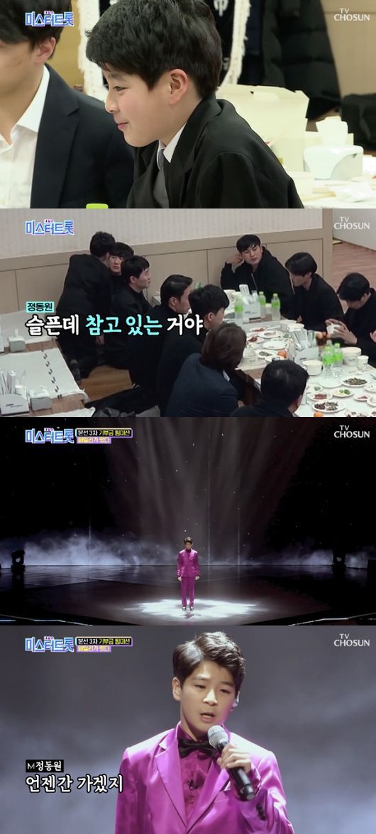 정동원은 자신을 위로하는 형들과 인사하며 식사를 챙겼다. 담담한 그의 모습에 남승민은 “너 안 슬퍼?”라고 묻자 정동원은 “슬픈데 참고 있는거야. 할아버지가 안 좋아해”라며 의연하게 답했다.