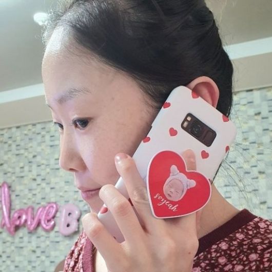 공개된 사진에는 박기가 딸 사진을 넣은 스마트폰 케이스를 들고 인증샷을 찍고 있는 모습이 담겨 있다. 코로나19 바이러스 때문에 집에서 육아를 하는 엄마의 안타까운 마음도 느낄 수 있다.