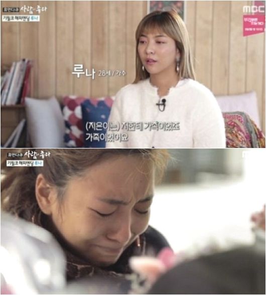 3일 방송된 MBC '휴먼다큐 사람이 좋다'에는 가수 루나가 출연했다.