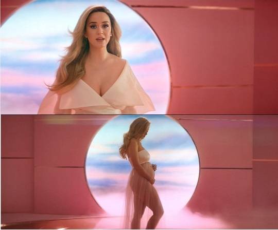 케이티 페리는 5일(한국시각) 공개한 신곡 '네버 원 화이트'(Never Worn White) 뮤직비디오에서 임신을 해 부른 배를 어루만지는 모습으로 등장했다.