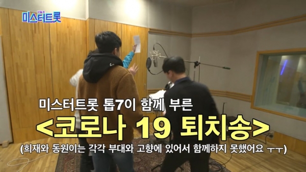 유튜브 미스터트롯 공식계정에 '미스터트롯 톱7의 코로나 퇴치송(feat. 김호중, 영탁, 이찬원,임영웅, 장민호)' 제목의 코로나19 퇴치송을 게재됐다. 동영상과 함께 '작게나마 위로가 되고자 미스터트롯 톱7이 '코로나 퇴치송'을 준비해봤습니다. 모두가 코로나로부터 자유로워지기를 진심으로 기원합니다(희재와 동원이는 각각 부대와 고향에 있는 관계로 참여하지 못했습니다 ㅜㅜ)'라는 메세지를 전했다.