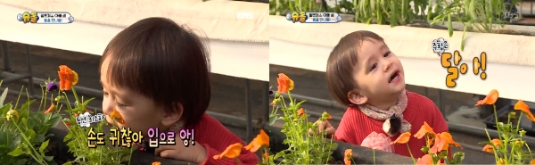 반면, 벤틀리는 '먹틀리'답게 손을 대지않고 꽃을 입으로 따 먹거나, "짜다", "달다", "미역국(맛)" 등 다양하게 꽃 맛을 표현하며 웃음을 자아냈다.