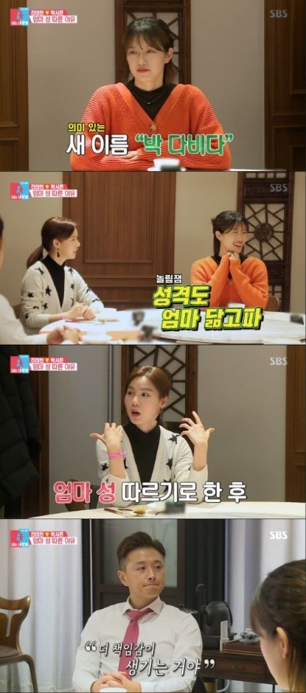 친구들은 세연 양이 엄마의 성을 따른 이유를 궁금해했다. 이에 진태현은 "사람들이 어떻게 생각할지 모르겠는데, 난 엄마 성을 주는 것도 나쁘지 않다고 생각한다. 난 다비다가 엄마를 닮았으면 좋겠다. 그래서 엄마 성을 주면 좋지 않을까 생각했다"며 딸을 향한 깊은 마음이 담긴 이유를 설명했다.