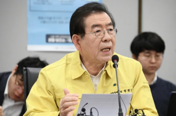 13일 박원순 서울시장은 오전 구로구 보건소에서 진행된 코로나19 정례브리핑에서 "서울 25개 자치구 약 4만명 모든 임산부에게 1인당 5매씩 마스크를 지급한다"고 말했다.