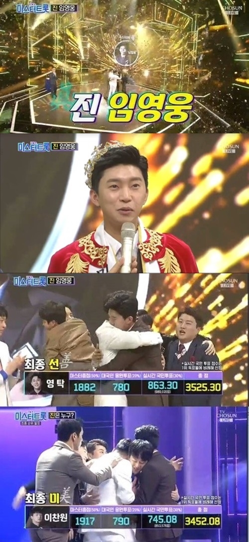 14일 방송된 TV조선 '내일은 미스터트롯(이하 미스터트롯)' 특별 생방송에서는 임영웅이 최종 진에 올랐다. 선은 영탁, 미는 이찬원이 차지했다.
