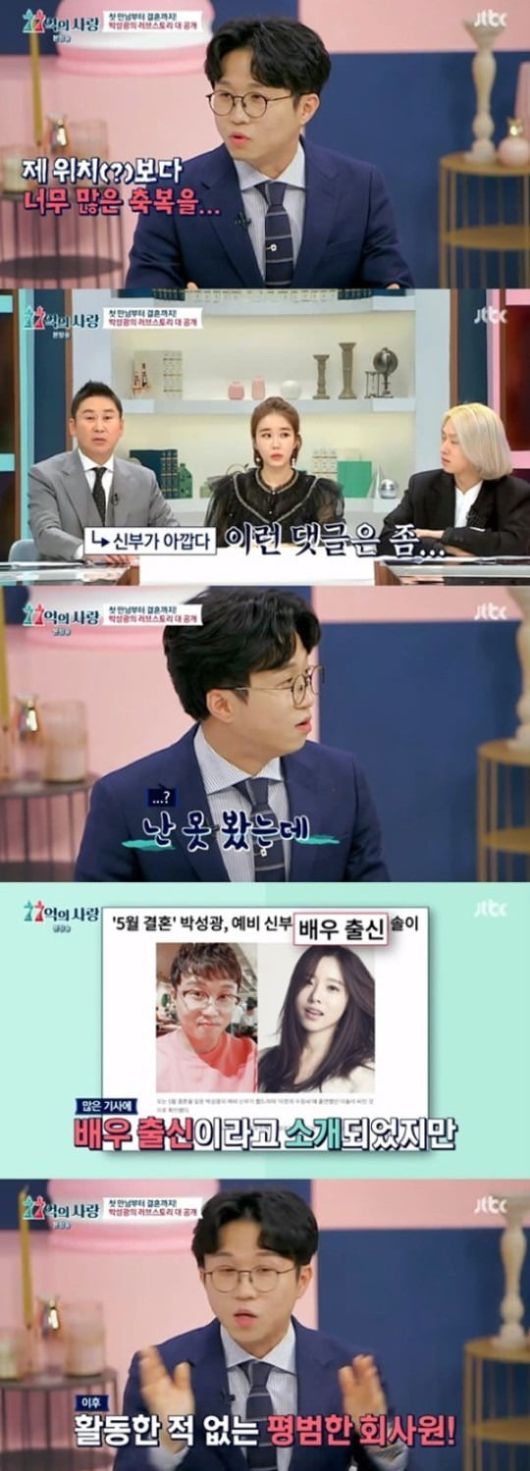 지난 16일 방송된 JTBC 예능프로그램 '77억의 사랑'에서는 결혼을 앞둔 박성광이 게스트로 출연했다.