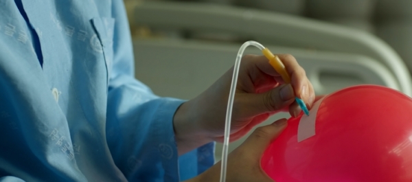 영희는 풍선에 테이프를 붙이고 링거 바늘을 꽂는다. 풍선은 터지지 않는다. 마치 터질 것 같은데, 결코 터지지 않는 아슬아슬함이 영희와도 닮았다. 어렸을 때 나도 풍선에 테이프를 붙이고 날카로운 바늘을 꽂아보는 놀이를 해본 적이 있다. 물이 반쯤 든 물 컵에 종이를 대고 뒤집어보는 놀이 또한 해보았다. 풍선은 터질 것 같아도 결코 터지지 않고, 물은 쏟아질 것 같아도 마치 쏟아지지 않는다. 난 지금 이만큼 감정이 차올랐는데 분통을 터뜨리지 못하는 것처럼. 터뜨리고 싶어도 터뜨릴 수 없는 그런 감정이 잘 은유된 장면이어서 기억에 남았다.