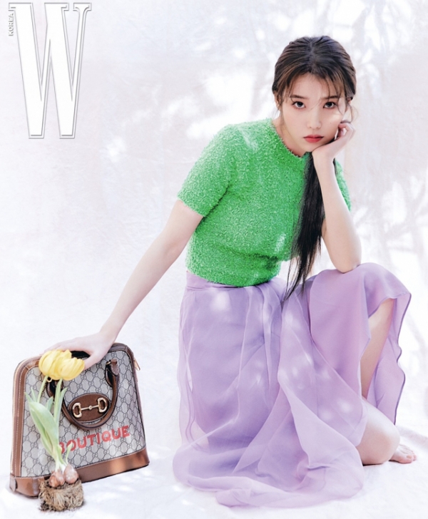 W 코리아의 공식 SNS에는 아이유가 앰배서더로 있는 이탈리아 명품 브랜드 구찌(Gucci)와 함께한 그녀의 패션화보가 공개되었다.