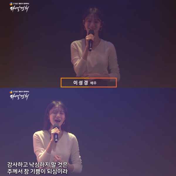 [스타인뉴스 이정명 인턴기자] 배우 이성경이 자신이 다니는 영훈오륜교회 온라인 예배에 등장해 찬송가를 부르는 영상이 화제가 됐다.