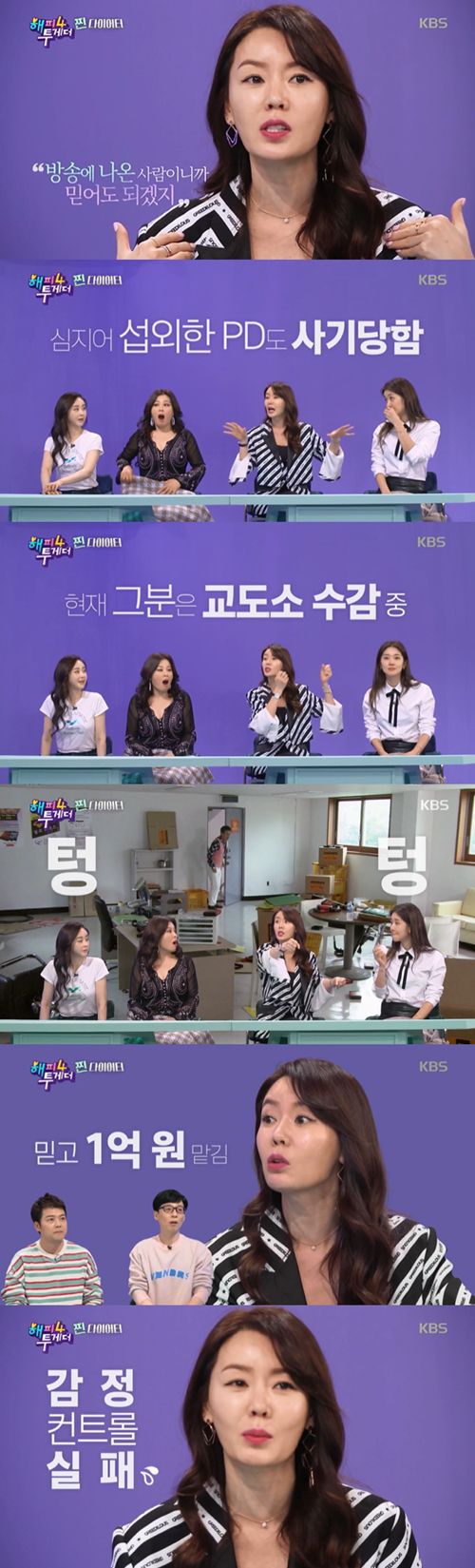 이어 "머리가 하얀데 라디오 시간이 됐다. 4시부터 6시 라디오라 직장인들에게 희망의 메시지를 줘야 한다. 사기를 당하고 난리가 나고 정신이 하나도 없는데 진행을 했다. 누가 신청곡으로 왁스 '엄마의 일기'가 왔다. 그때부터 감정이 주체가 안돼서 울었다. 보이는 라디오라 PD가 놀라서 카메라를 뒤로 뺐다. 노래를 세곡 틀었는데도 우니까 국장님까지 놀라서 뛰어내려왔다. 왜 그러냐고 해서 사기 당했다고 했다. 국장님이 생방송을 해야 하니까 '내가 뭘 도와줘야 하냐' 해서 5만원만 달라고 했다. 국장님이 5만원을 줘서 그 와중에 웃기려고 '이제 피해 금액 9995만원이다'고 했다"고 말해 웃음을 자아냈다.