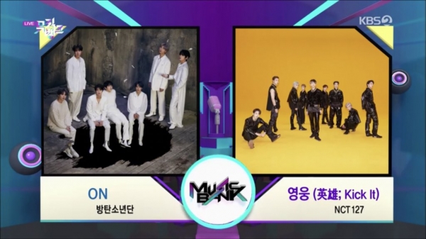 [스타인뉴스 이정명 인턴기자] 방탄소년단과 NCT 127이 뮤직뱅크 3월 넷째주 1위 후보로 다시 만났다.