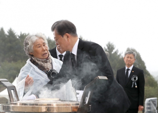 앞서 27일 문재인 대통령은 '서해 수호의 날' 기념식에 참석해 분향했다. 이때 천안함 46용사 중 한 명의 유족이 문재인 대통령을 막아서며 "대통령님, 누구 소행인가 말씀 좀 해달라. 가슴이 무너진다"라며 호소했다.