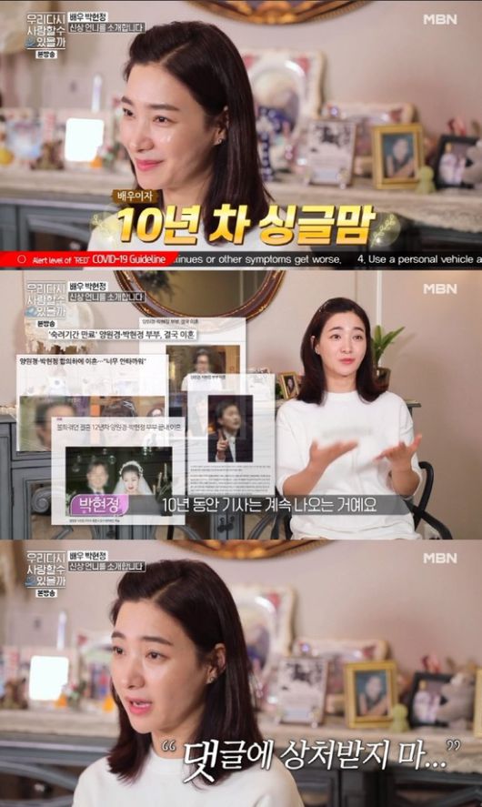 양원경과 결혼 후 이혼을 한 박현정은 "이혼 후 밖으로 나가기가 무서웠다. 10년 동안 인터뷰를 한 적이 없었는데 이혼과 관련된 기사는 계속 나오더라. 자극적인 기사 댓글이 힘들게 느껴졌었다. 아이들을 불러서 '댓글에 상처받지 말라'고 솔직하게 이야기했었다"며 힘들었던 때를 떠올렸다.