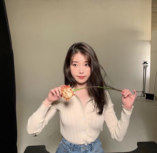 [스타인뉴스 김소영 인턴기자] 가수 아이유가 꽃을 입에 문 사진을 공개했다.