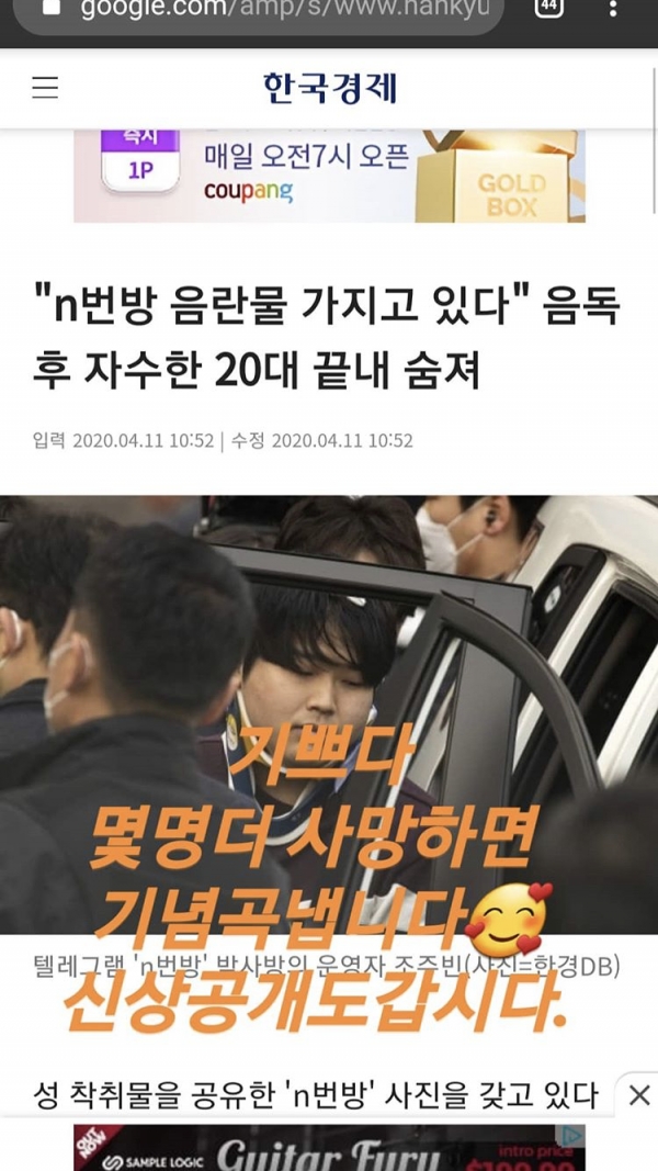 해당 기사는 성 착취물을 공유한 ‘n번방’의 사진을 가지고 있다며 자수한 20대가 음독해 끝내 사망에 이르렀다는 것. 자수한 20대 남성 A씨는 “박사방 운영자가 검거되고 n번방 사건 관련 음란물 소지자 처벌을 촉구하는 여론이 높아지자 불안했다”며 “n번방 사진을 가지고 있다”고 자수했다고 전해진다. 실제 A씨의 휴대전화에는 아동 음란물을 포함한 340여 장의 사진이 발견되었으며 텔레그램을 통해 사진을 받았다고 했다.