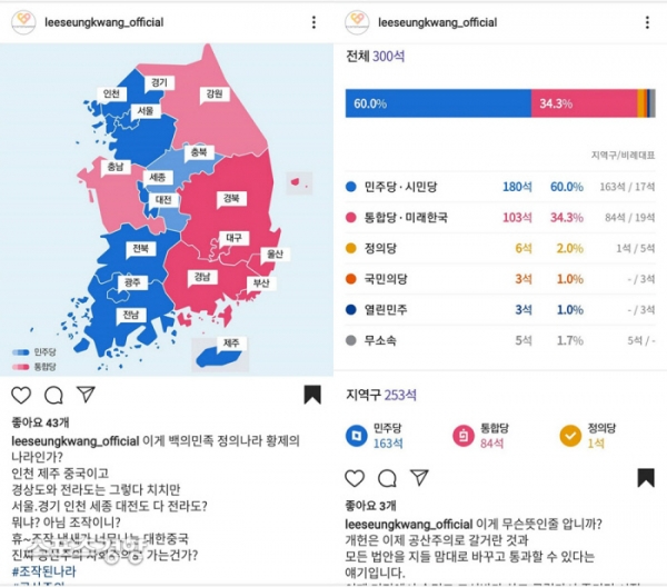 [스타인뉴스 이상백 기자] 구피 출신 이승광이 4·15 총선 결과에 어이없는 분노를 드러냈다.