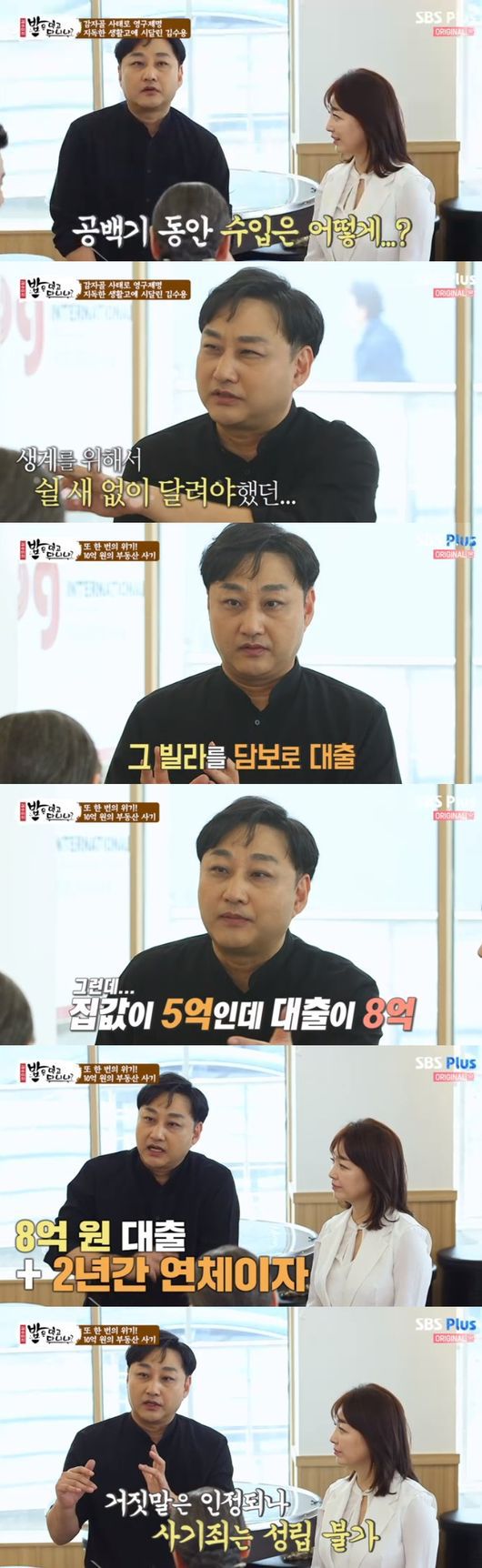 이날 김수용은 "2002년 한 선배에게 제 명의를 빌려줘 빌라 대출을 받게 해줬다. 명의를 빌려줬으니 수수료를 3천만 원 준다고 해서 넘어갔다"며 "'혹시 대출 안 갚으면 어떻게 하냐'고 물었더니 선배가 '네 집이니까 팔면 되지 않겠냐'고 해서 믿었다"고 밝혔다.
