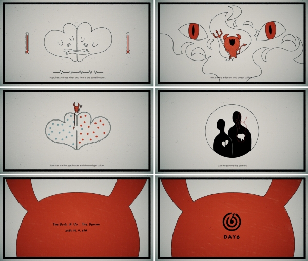 이번 컴백 트레일러에는 귀여운 일러스트와 함께 DAY6의 멤버 제이와 영케이의 내레이션이 담겨있다. 이들은 영어 내레이션을 통해 “행복은 두 사람의 마음이 똑같이 따뜻할 때 오지만 이를 허락하지 않는 디먼의 존재가 있다.”, “디먼은 뜨거운 것은 더 뜨겁게, 차가운 것은 더 차갑게 만든다.”라는 말과 함께 “우리가 디먼에게서 살아남을 수 있을까?”라는 질문을 던졌다. 영상의 마지막에는 트레일러 속 소개됐던 ‘디먼’의 캐릭터와 짧은 사운드를 공개해 믿고 들을 수 있는 수많은 음악을 선물했던 DAY6가 이번에는 어떤 음악을 선보일지 궁금증을 불러일으킨다.