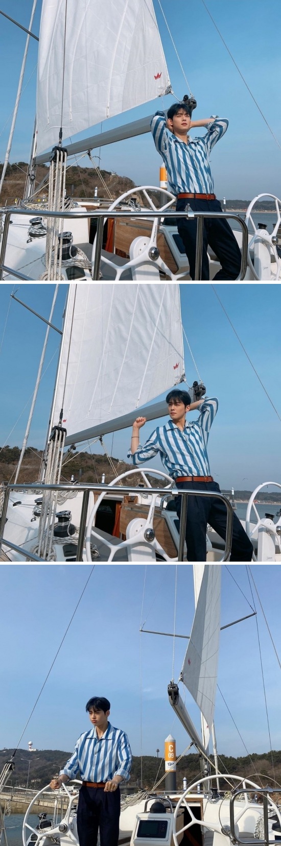 공개된 사진 속 차은우는 파란색 스트라이프 셔츠를 입고 보트 위에서 완벽한 비주얼을 뽐내며 시선을 사로잡는다. 특히 4일 전 공개된 아스트로 일곱 번째 미니앨범 ‘GATEWAY’의 티저 이미지 촬영 현장에서 찍은 사진으로 보여 컴백에 대한 팬들의 궁금증을 더욱 자극한다.