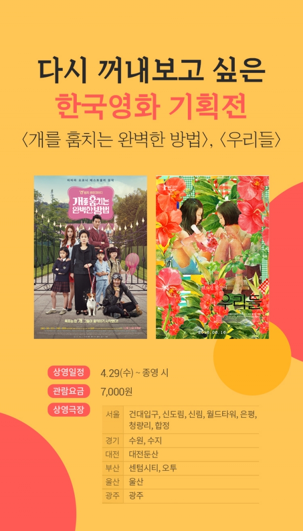 이번 기획전의 상영작은 영화 ‘개를 훔치는 완벽한 방법’과 ‘우리들’이다.
