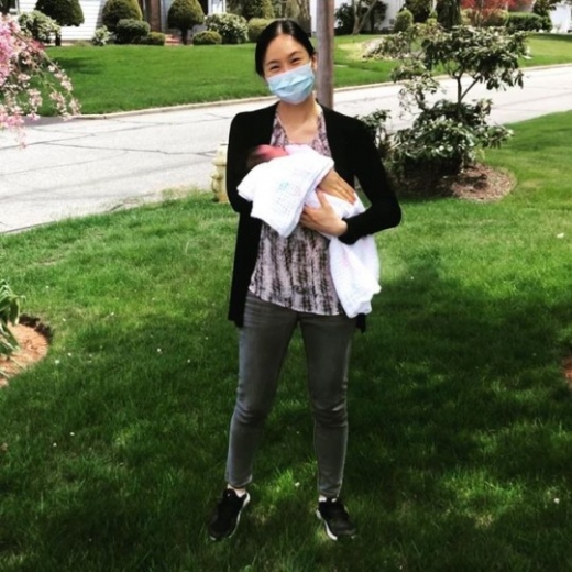 공개된 사진에는 마스크를 쓰고 태어난 아기와 함께 산책 중인 이소은의 모습이 담겼다.