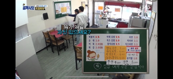 두번째는 쫄라김집이였다. 쫄면, 라면, 김밥을 주로 팔고 그외에 떡볶이나 튀김등을 팔고 있었다. 쫄라김집의 사장님은 쫄면, 라면, 김밥 3가지만을 주력으로 팔고 싶어했고 쫄면에 자신이 있다고 했다. 튀김에는 백종원이 하는 프로그램인 '맛남의 광장'에서 나온 멘보사과를 따라한 튀김도 있었다. 하지만 이 가게의 문제는 주방 동선이었다. 김밥이나 튀김류는 가게 앞쪽 그리고 면류는 가게 뒷쪽에 주방이 있어 한명이 운영하기에 힘든 구조였다. 백종원도 최소 2명이 해야하는 가게라고 말을 했다.