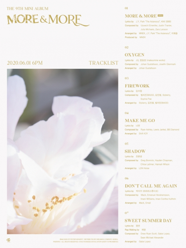 한편 6월 1일 오후 6시 발매되는 트와이스의 아홉 번째 미니 앨범 'MORE & MORE'는 지난 11일부터 예약 판매를 진행 중이다.