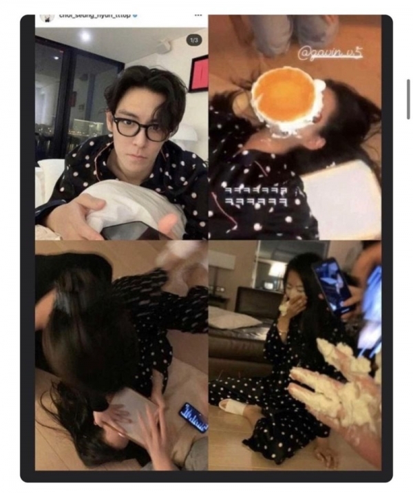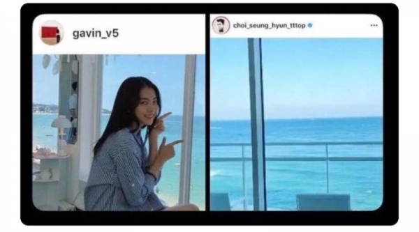 김가빈이 지난해 8 인스타그램에 바다사진을 올렸는데, 탑 또한 비슷한 시기에 인스타그램에 바다 사진을 올리기도 했다. 밖에도 사람은 커플 파자마를 입은 사진이 공개되기도 했다.