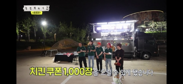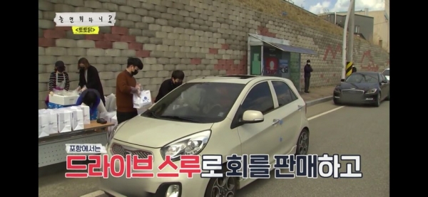 네 사람은 푸드트럭을 빌려 드라이브 스루 형식으로 치킨을 선물했다. 최근 코로나 19로 인해 회 같은 음식도 드라이브 스루를 이용해서 판매하는 곳이 생겨났다. SNS로 홍보를 시작했고 많은 손님들이 몰려왔다.