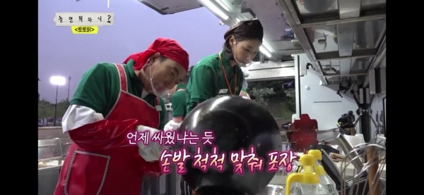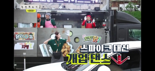 [스타인뉴스 오준열 인턴기자] 지난 방송에서 치킨을 튀기던 유재석과 박명수가 23일 방송된 MBC '놀면 뭐하니?'에서 치킨 드라이브 스루 행사 '토토닭'에 나섰다.