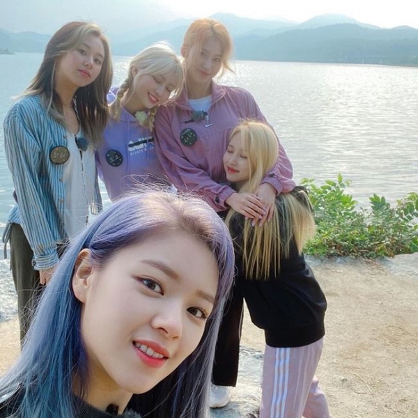 공개된 사진 속 모모는 사나, 미나, 채영, 정연과 함께 훈훈한 미모를 드러내며 포즈를 취하고 있다.