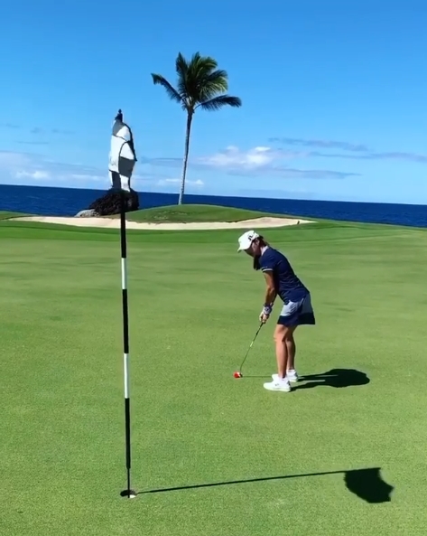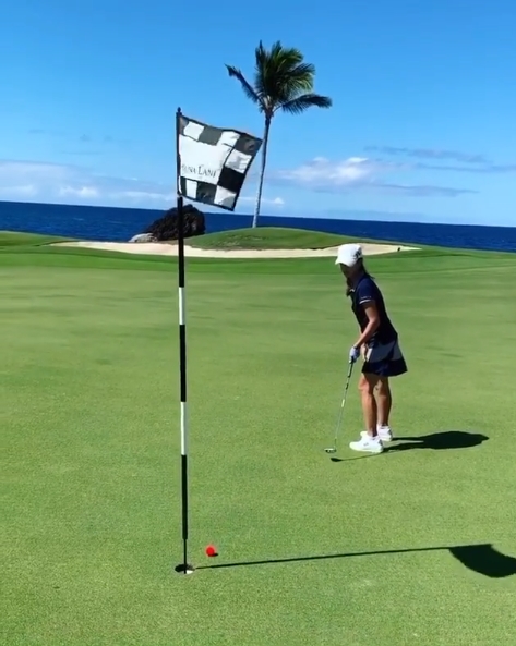 영상에는 이민정이 하와이 한 골프장에서 퍼팅을 시도하는 장면이 담겼다. 이민정은 조심스레 공을 쳤지만 퍼팅에 성공하진 못했다.